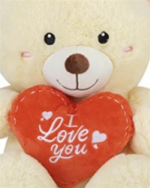 This 30cm soft plush teddy bear holds a bright red heart embroidered with āI Love You,ā making it the perfect companion to a romantic bouquet or flower arrangement.